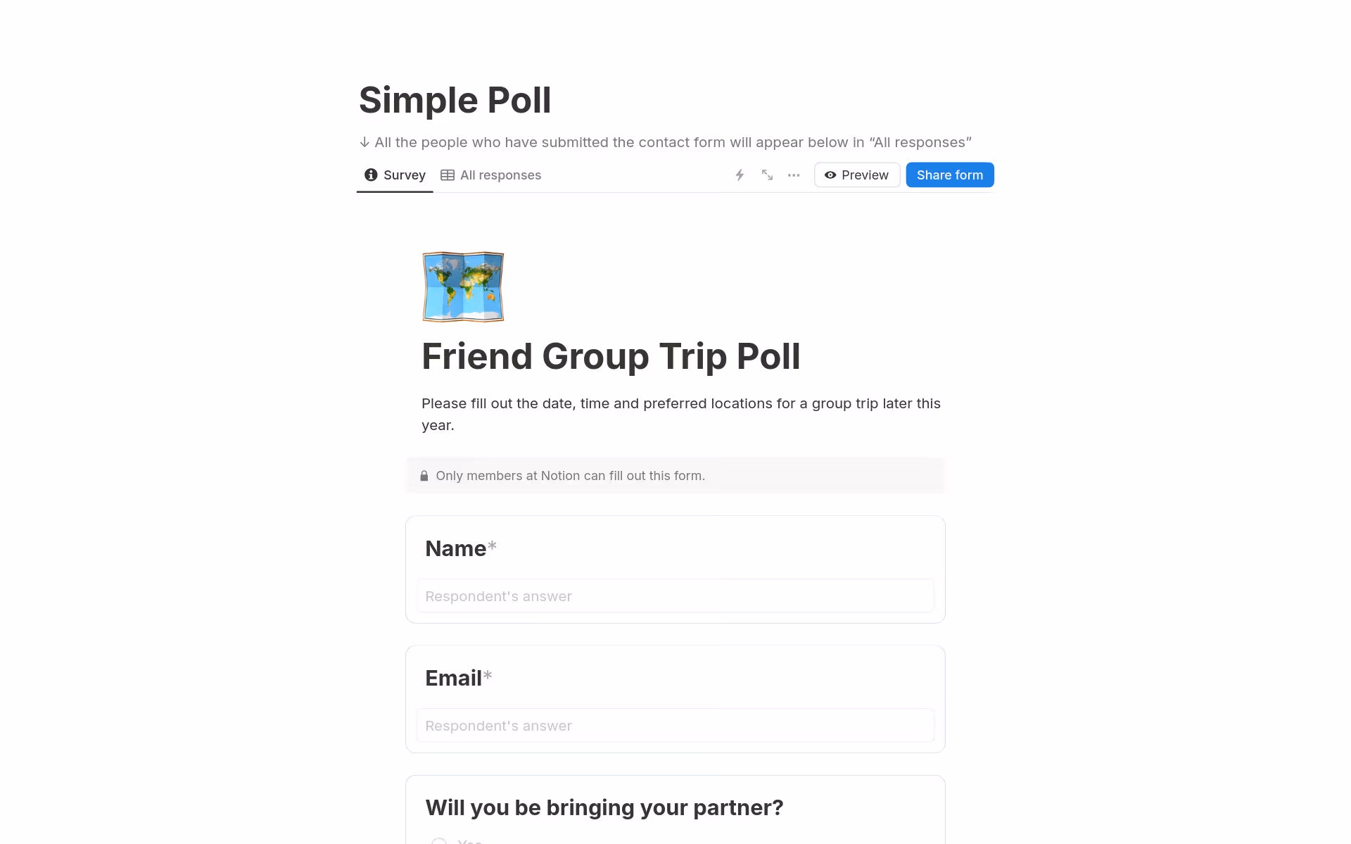 Great, lite form to use to gather simple inquiries and have it archived in a table on the same page!